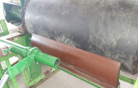 Acest razuitor din PVC este montat la exteriorul benzii pentru a curata cauciucul de resturile care raman in urma evacuarii continutului de pe banda.