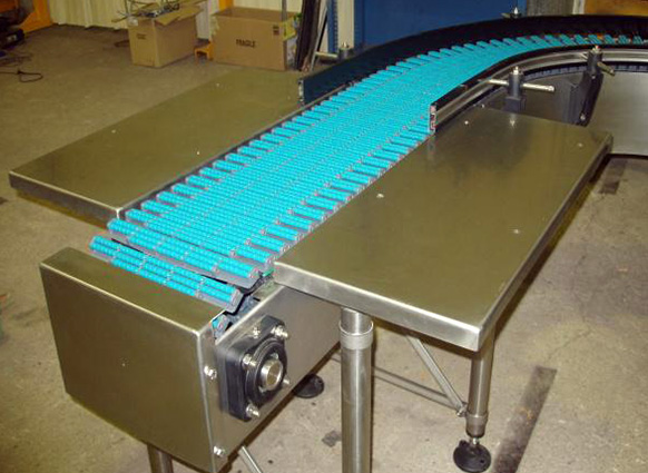 Aceste transportoare sunt utilizate pentru toate aplicatiile care implica transportarea produselor gata ambalate - cum ar fi sticle PET impachetat, bauturii impachetate in baxuri sau cutii de carton – sau in cazul in care este interzis deteriorare ambalajului in timpul procesului de acumulare. Aceste lanturi au partea de sus neteda prevazuta cu un numar de role mici, care sa permita circulatia usoara a produselor deosebit de sensibile sau fragile pe benzi de acumulare. Cu acest beneficiu suplimentar rezulta o frecare redusa de rulare intre partea inferioara a marfurilor si suprafata rolelor. Bunurile de pe lanturile cu suprafata plana conventionale aluneca daca se opreaste brusc in zona de acumulare. Cu toate acestea procesul de alunecare supune sarcina la stres fizic mult mai mare in zona de contact si un risc mai mare de deteriorare a produselor cu suprafete sensibile.
